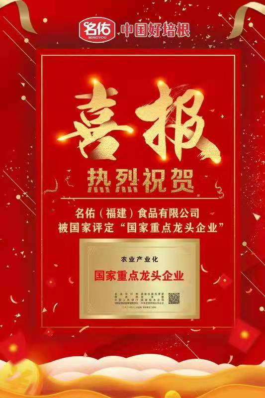 熱烈慶祝我司名佑(福建)食品有限公司經(jīng)各?。▍^(qū)、市)遴選、專家評審和全國農(nóng)業(yè)產(chǎn)業(yè)化聯(lián)席會議審定,獲得農(nóng)業(yè)農(nóng)村部公示第七批農(nóng)業(yè)產(chǎn)業(yè)化國家重點龍頭企業(yè)。