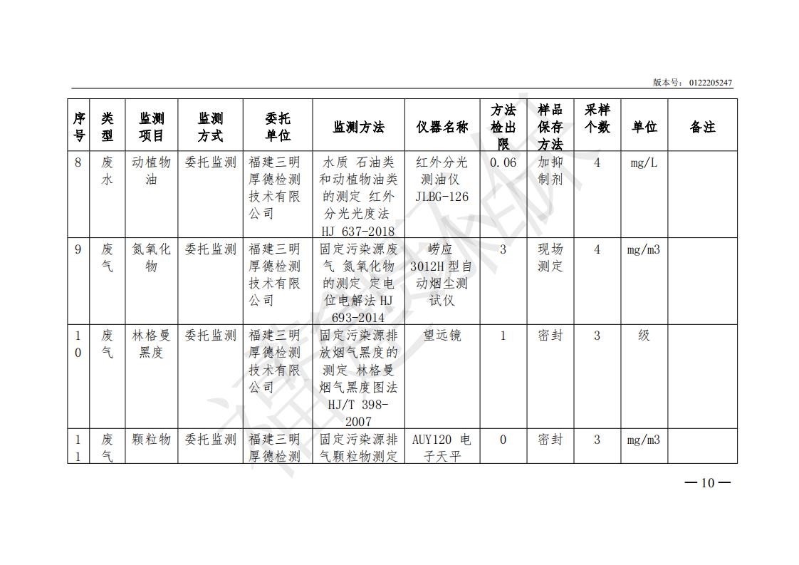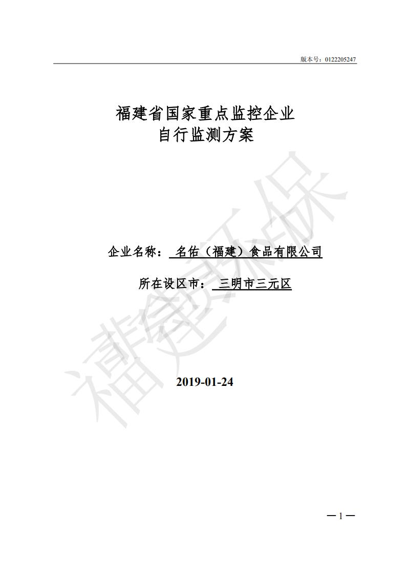 名佑(福建)食品有限公司2019年度環(huán)境自行監(jiān)測方案信息